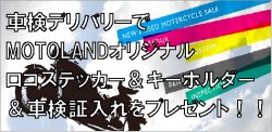 車検デリバリーまたは車検をご依頼いただきましたお客様全員に、モトランドオリジナルロゴステッカー&キーホルダー&車検証入れをプレゼントいたします!!去年よりリニューアルしましたモトランドロゴのステッカー&キーホルダーはオートバイに貼っても、カギに付けても、お洒落にキマります!!車検証入れは前回車検から2年も経つと意外と古くなっているケースがございますのでオートバイともに綺麗になると気持ちがイイですよ!!