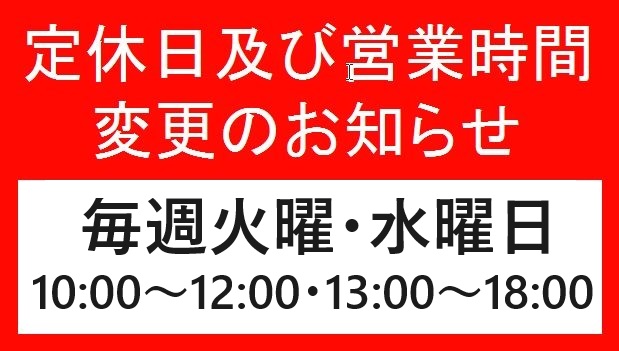 定休日と営業時間を変更させていただきます。